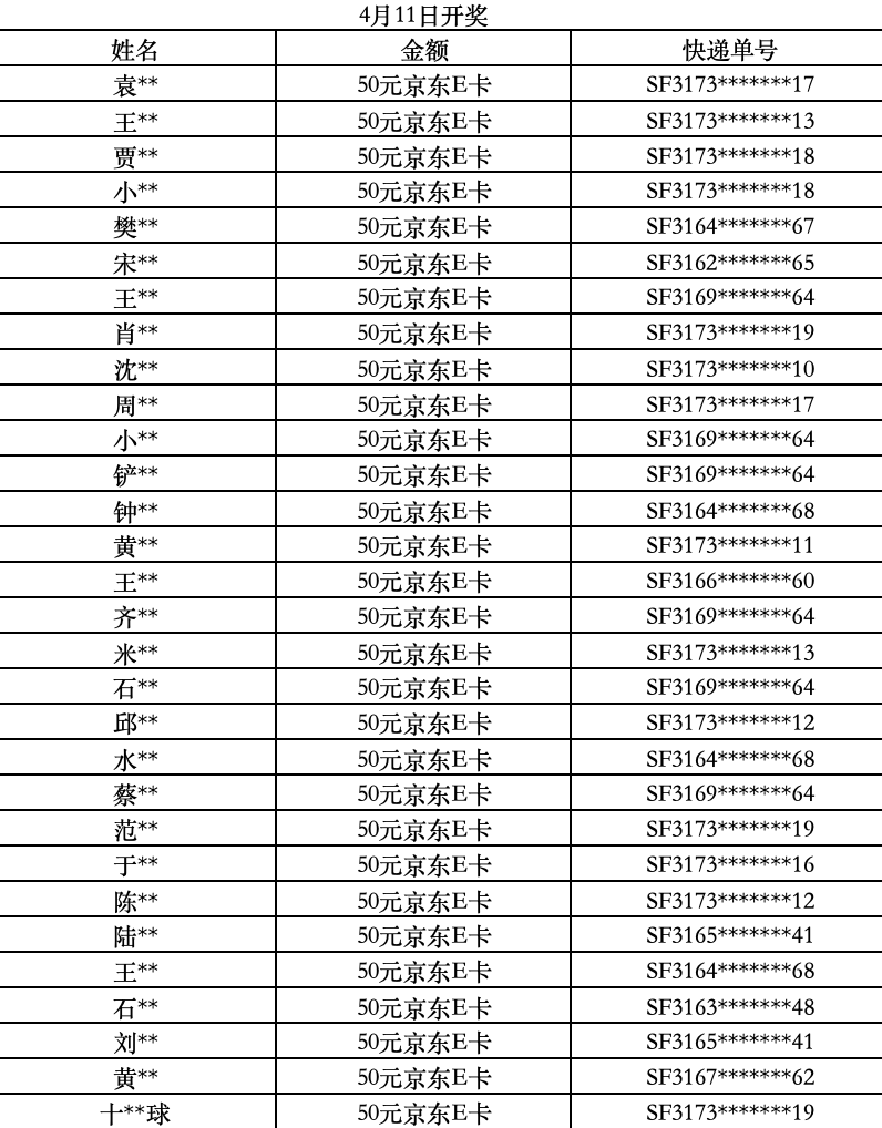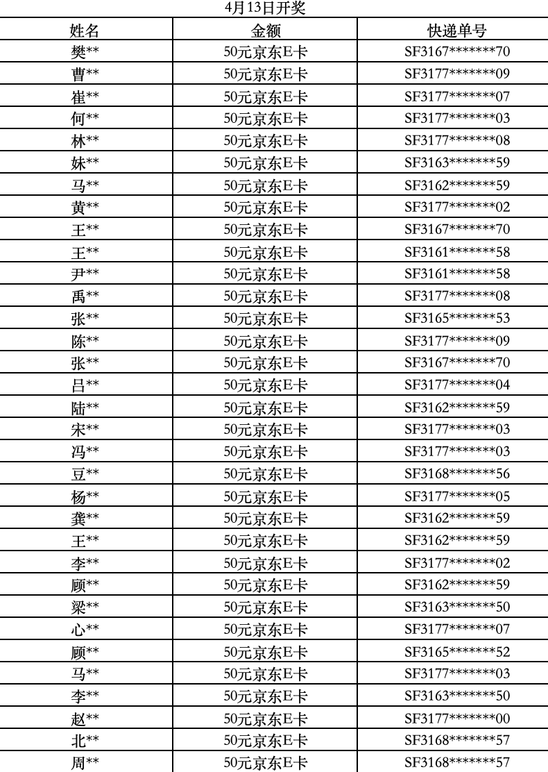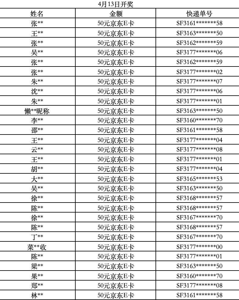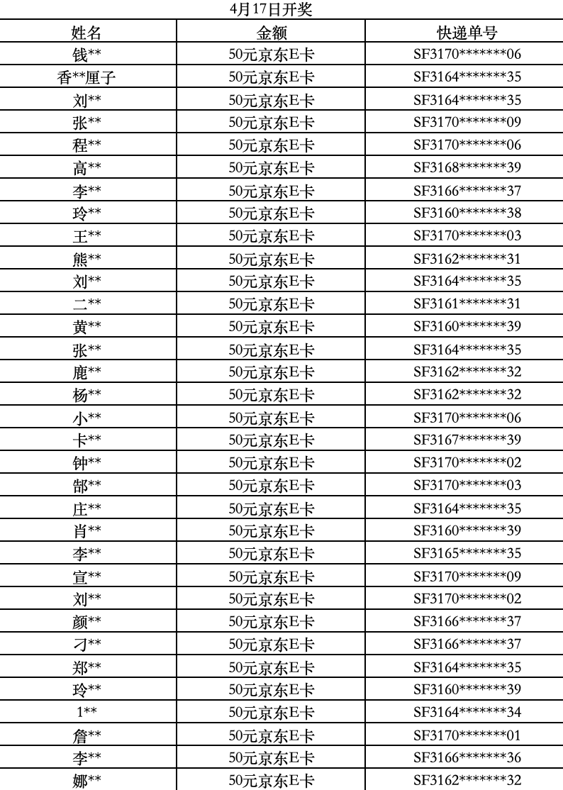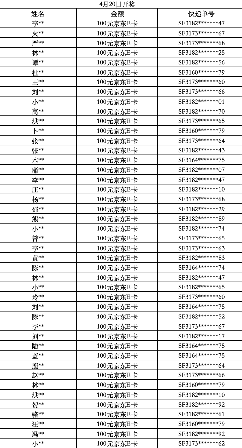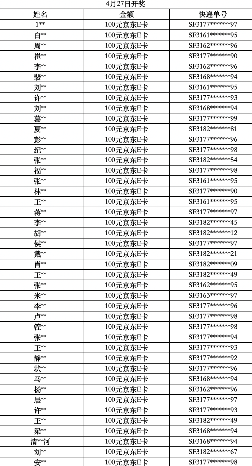 以下是是2025年4月1日至4月30日开奖的【已填写地址,已发货】的中奖名单: