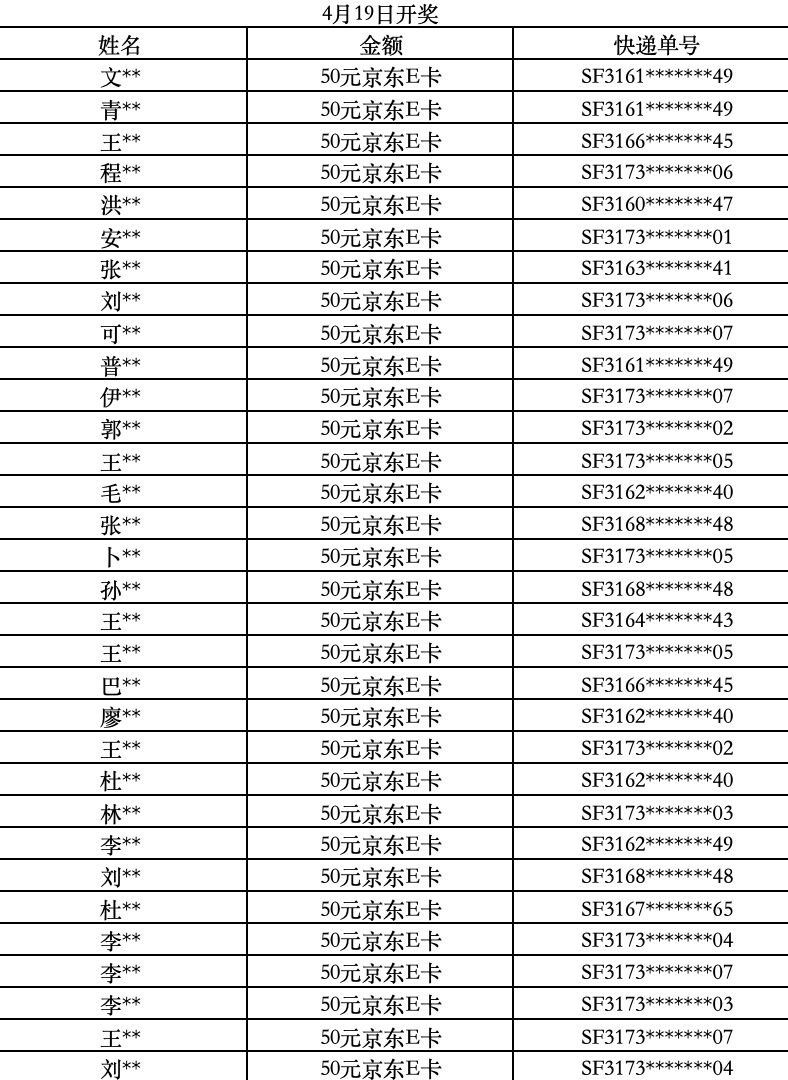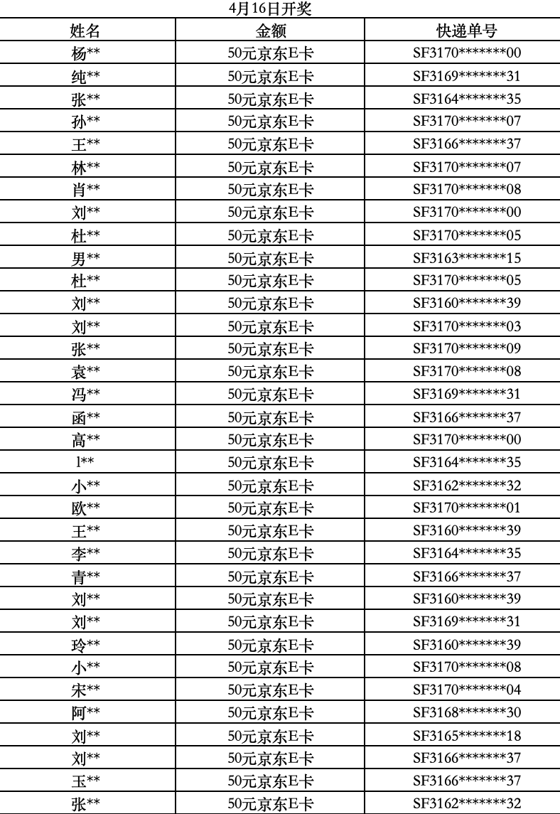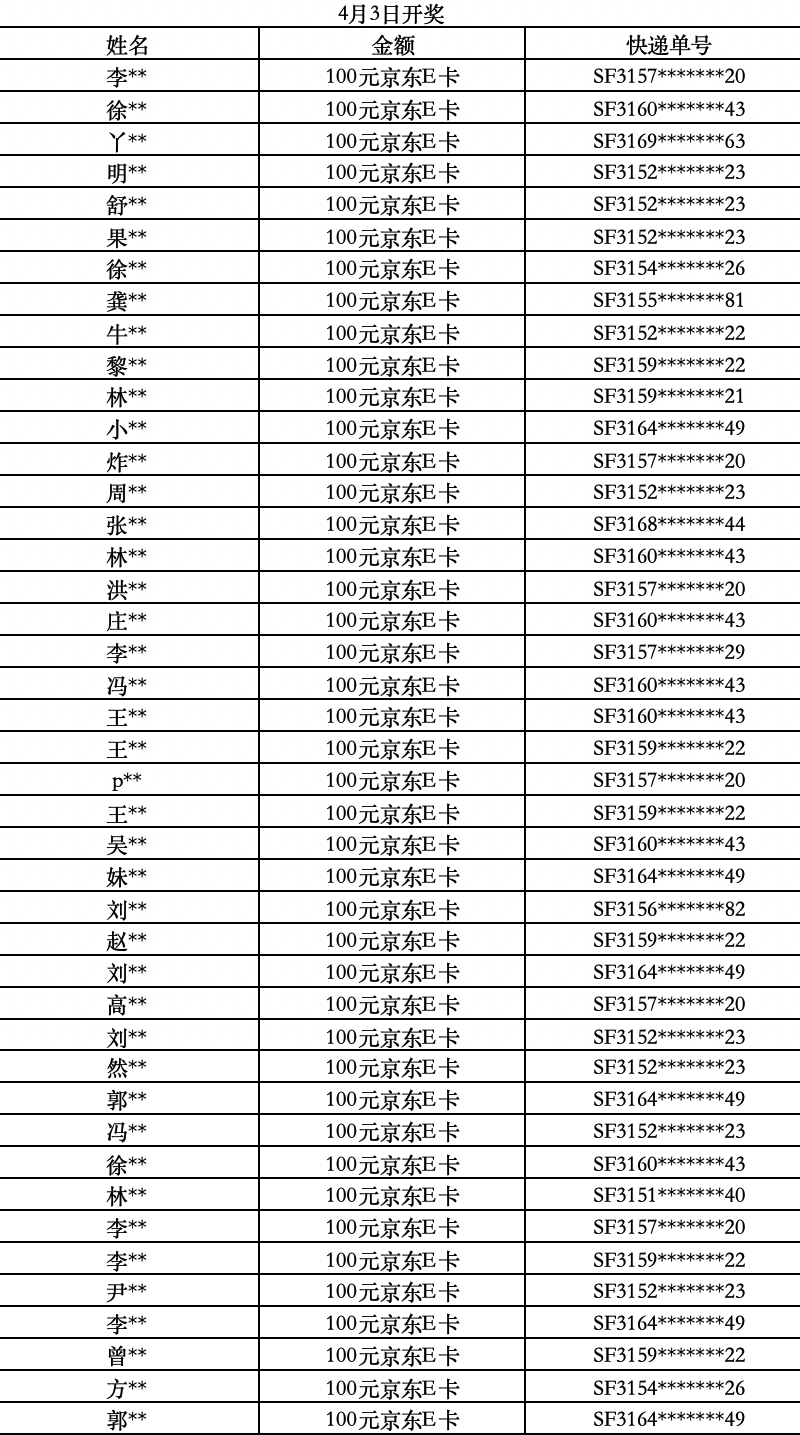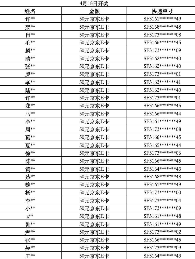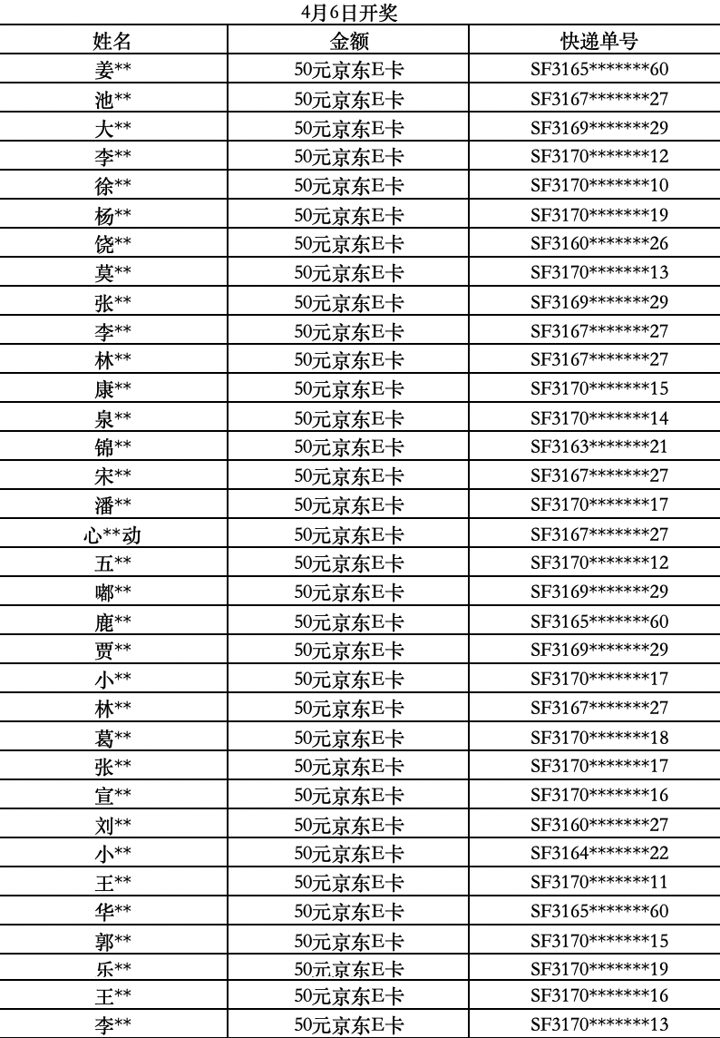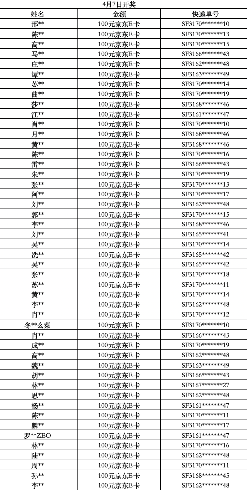 以下是是2025年4月1日至4月30日开奖的【已填写地址,已发货】的中奖名单: