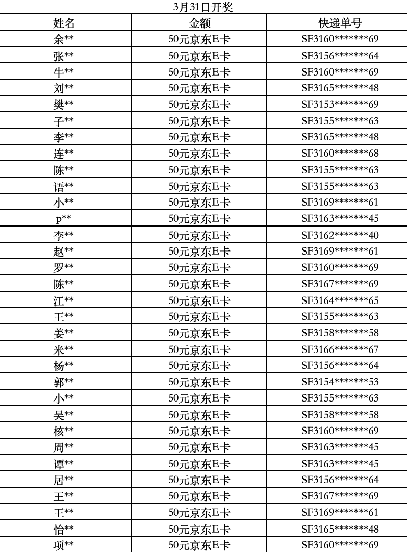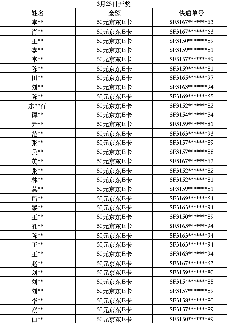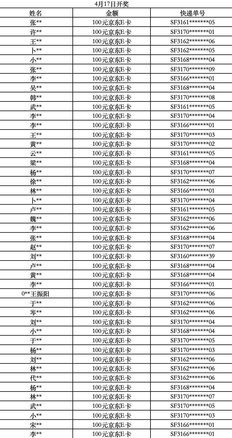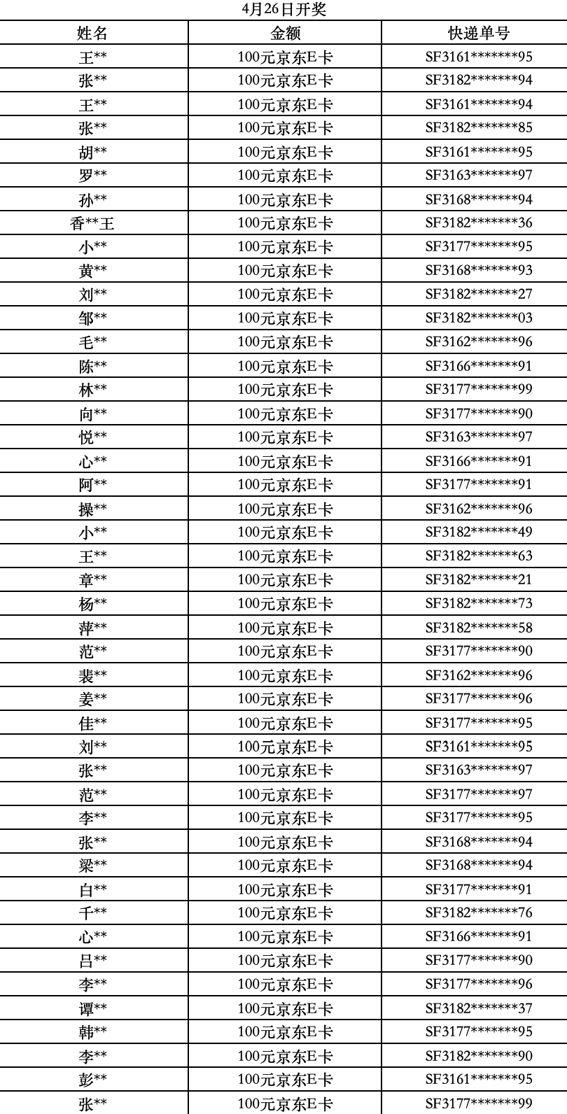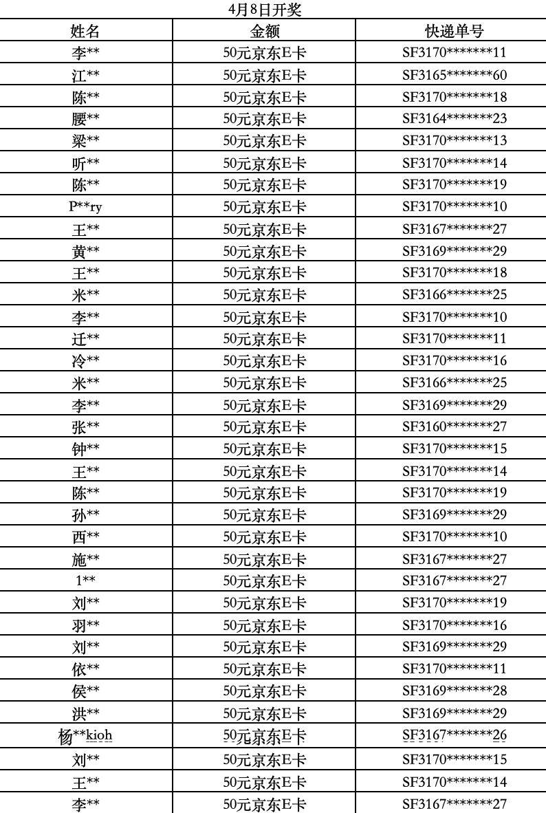 以下是是2025年4月1日至4月30日开奖的【已填写地址,已发货】的中奖名单: