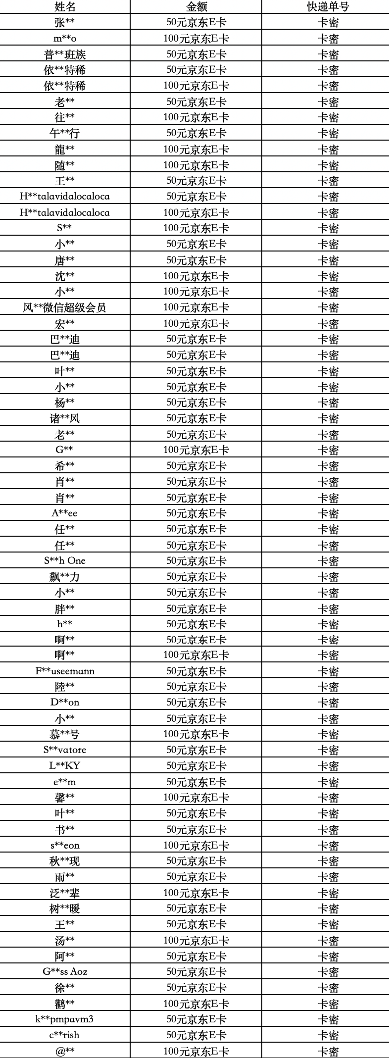 对实体卡的快递有疑问的朋友,例如漏填资料,手机号填错,奖品发错之类的问题,可以在公众号后台输入“实体卡”或者“奖品”,添加小助手微信咨询。