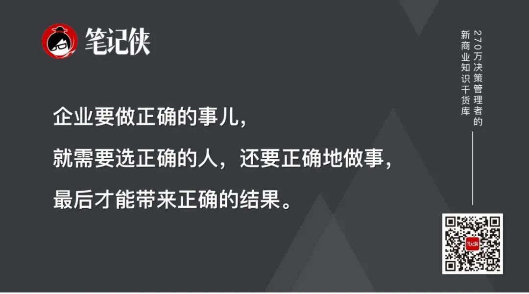 简单来说,一个企业要做正确的事儿,就需要选正确的人,还要正确地做事,最后才能带来正确的结果。