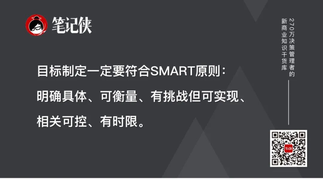 所以,在目标制定方面,一定要符合SMART原则:明确具体、可衡量、有挑战但可实现、相关可控、有时限。