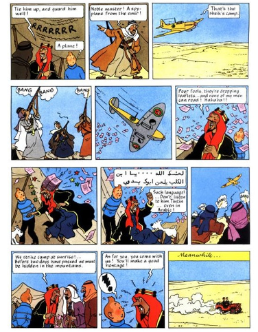 二战前阿拉伯人跟欧美人的微妙关系,在我最喜欢的“丁丁历险记”的《法老的雪茄》、《红海鲨鱼》、《金钳螃蟹贩毒集团》等几部中东作品,尤其是《黑金之国(Tintin in the Land of Black Gold)》中,表现得就很鲜明。