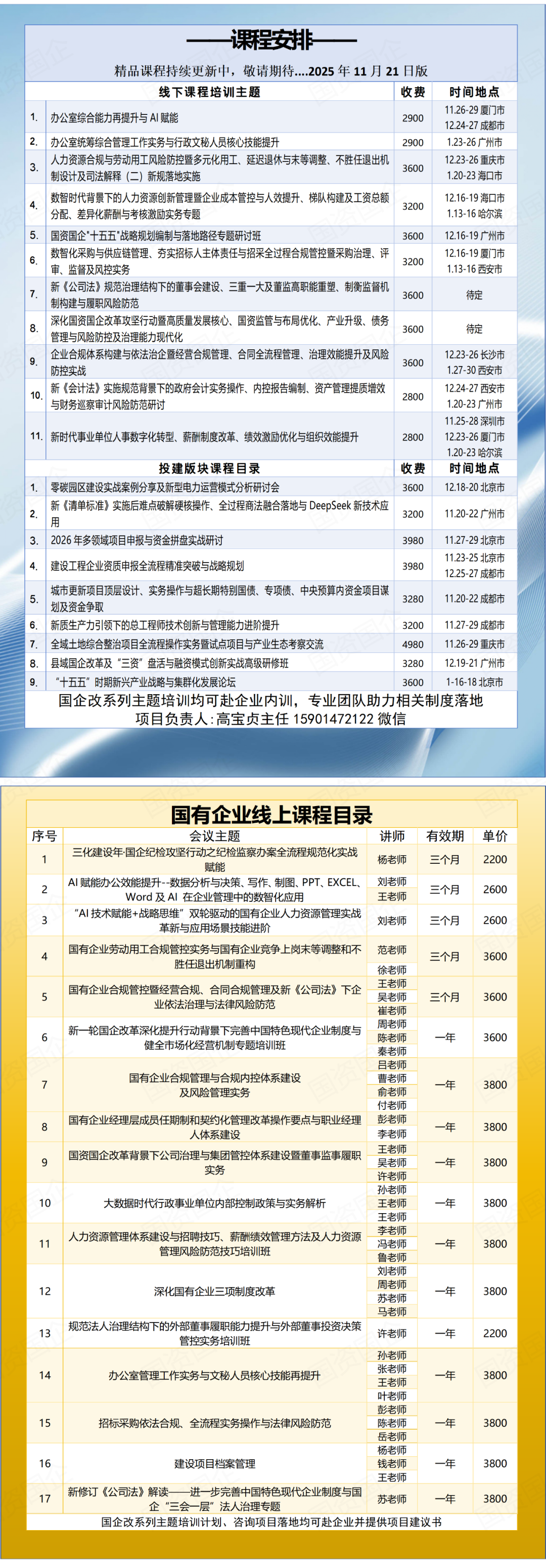 2.本次培训内容及国企改革相关培训内容均可赴企业提供内训;