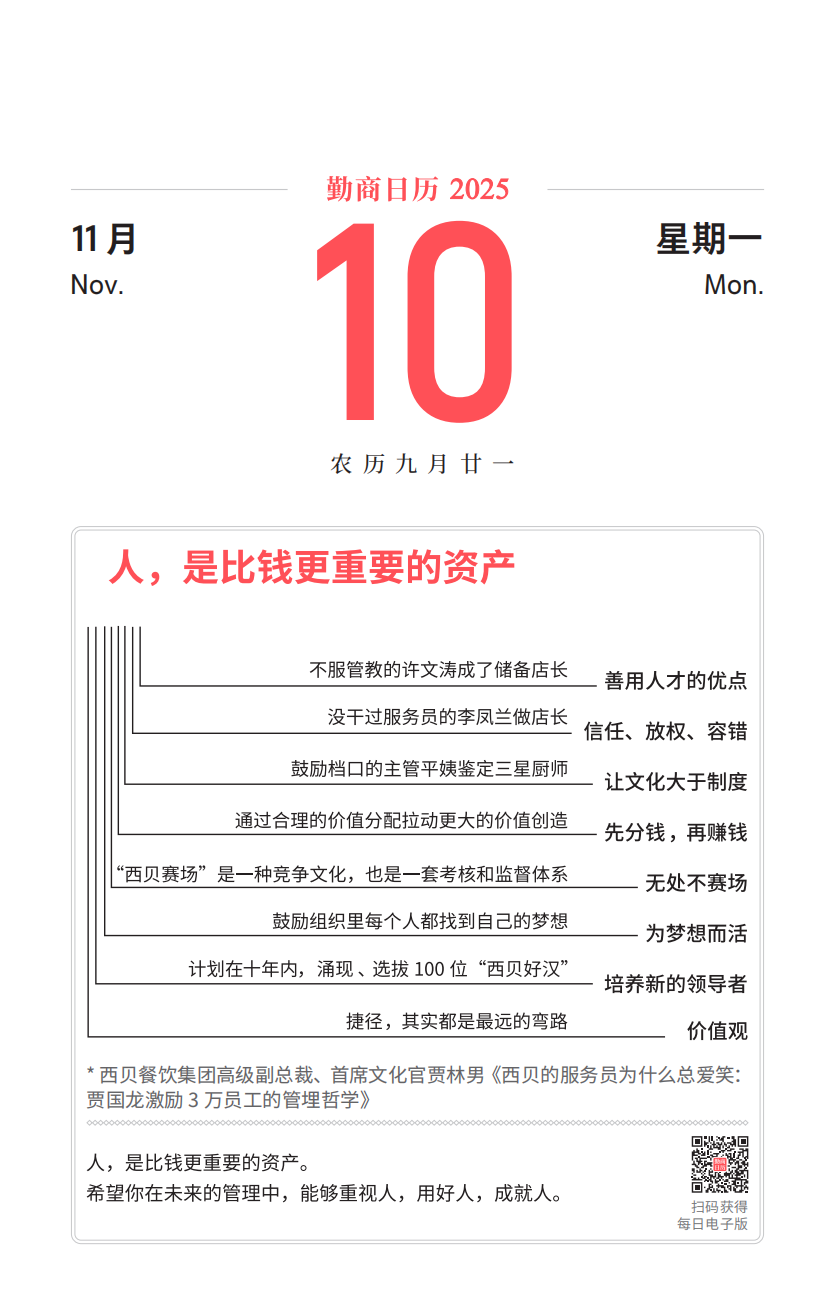 11月10日(勤商日历卡片):人,是比钱更重要的资产