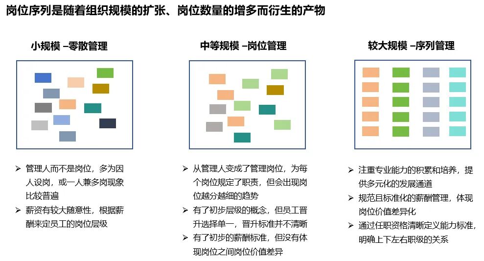 注意——并非针对所有功能都要设置序列,当某类职位人员很少、或非重点职位时,则可暂时不设置,如《腾讯职业管理者手册》虽然提到公司设置了操作族,但手册中并未体现职类、标准。