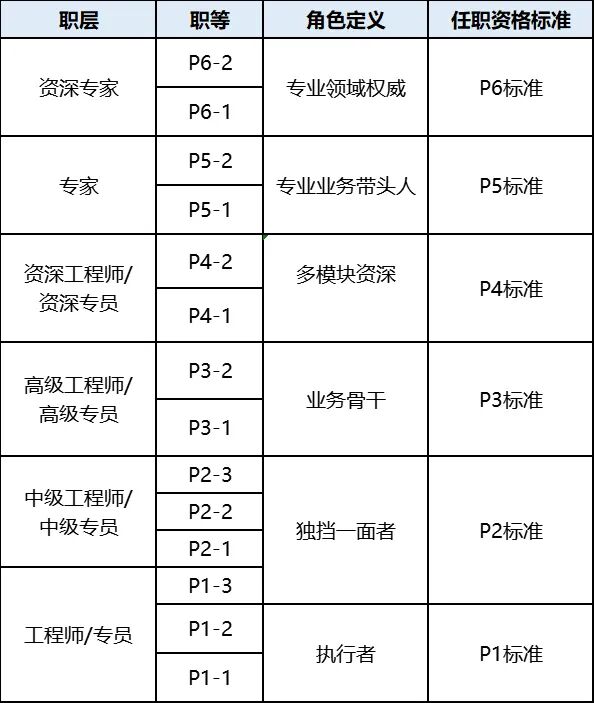 1)阶梯式职级:专业层级内细分职等,通过小步快跑实现晋升。如:华为、大疆、腾讯。特点是相邻级别能力差异小、晋升机会更多、同职等的薪酬差异不大,适合注重内部公平性和稳定性企业