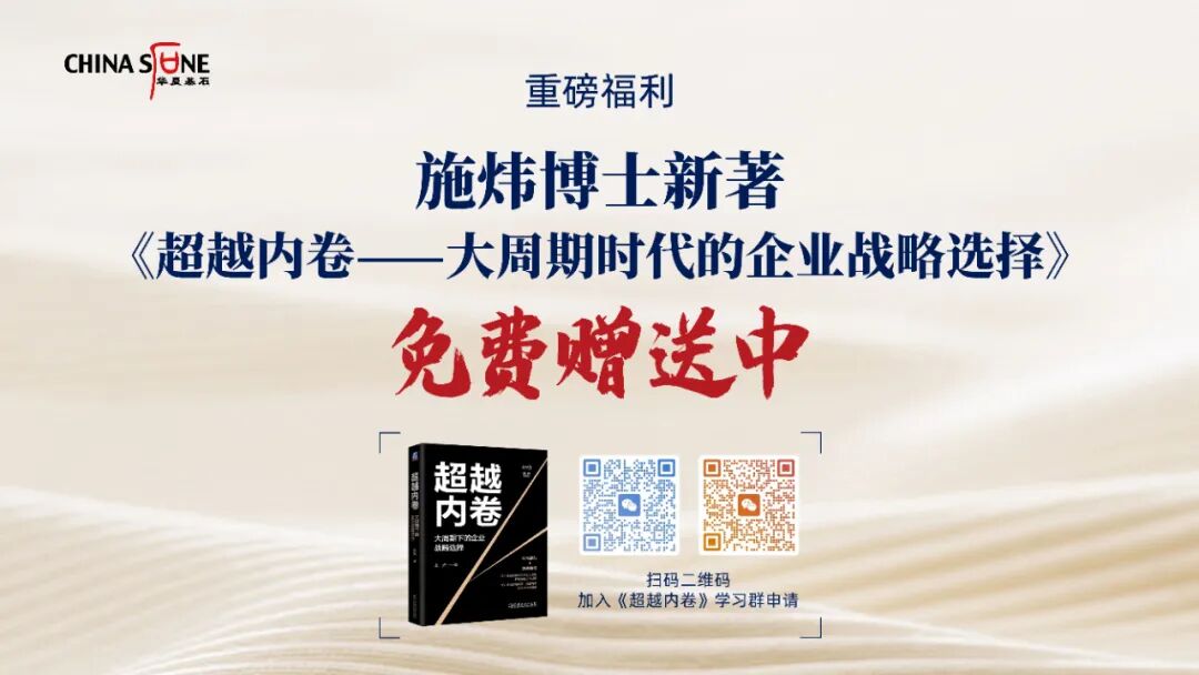 重磅福利:施炜博士新著《超越内卷——大周期时代的企业战略选择》向华夏基石e洞察粉丝免费赠送1000册;并进行三场主题直播,深入系统讲授该书核心内容及施炜博士三十年战略管理咨询实践!