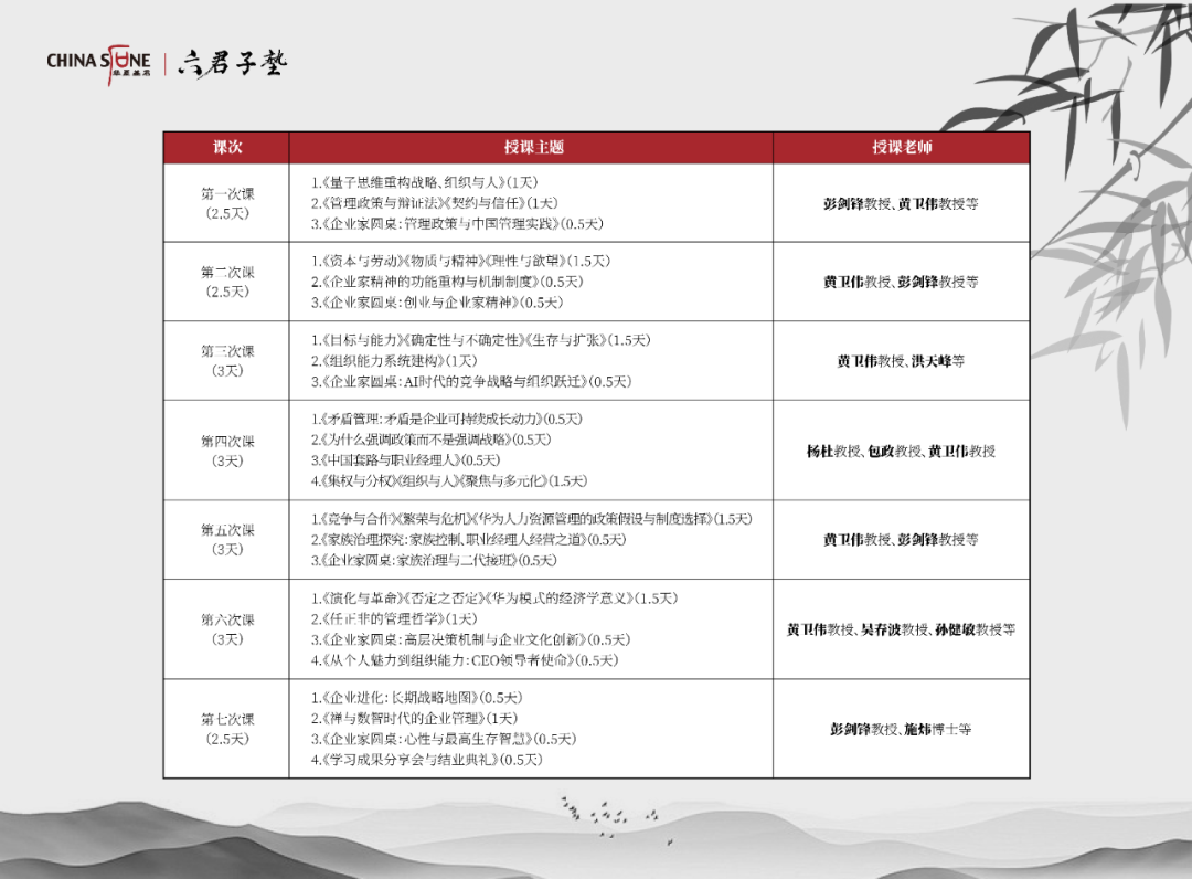 六君子塾 • 企业家创始人班2026级二期招生中(附课程表)