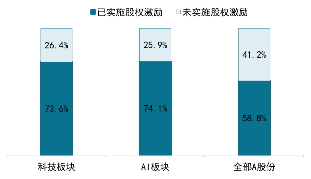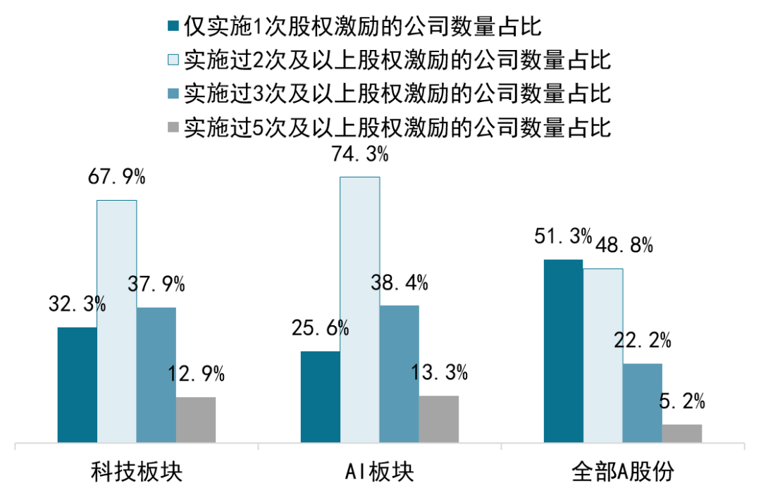 图3:截至2025年,底科技板块、AI板块和全部A股多期股权激励情况