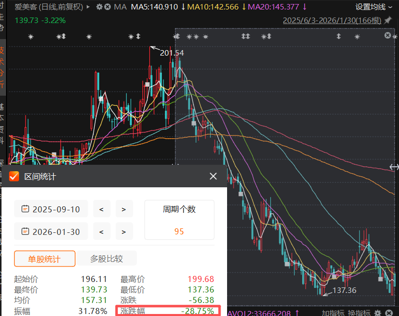 自2025年9月10日爱美客子公司REGEN收到上述临时措施的决定以来,股价累计跌幅已近30%。