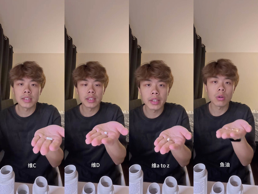 明眼人能看出,这三种干湿两栖的食物是无法满足人体每日所需的维生素的。因此,豆豆子也会借用一些神秘的科学力量,在每日睡觉前吟唱并按序吞服维c、维d、维a to z、鱼油,以维持人体的基本体征。