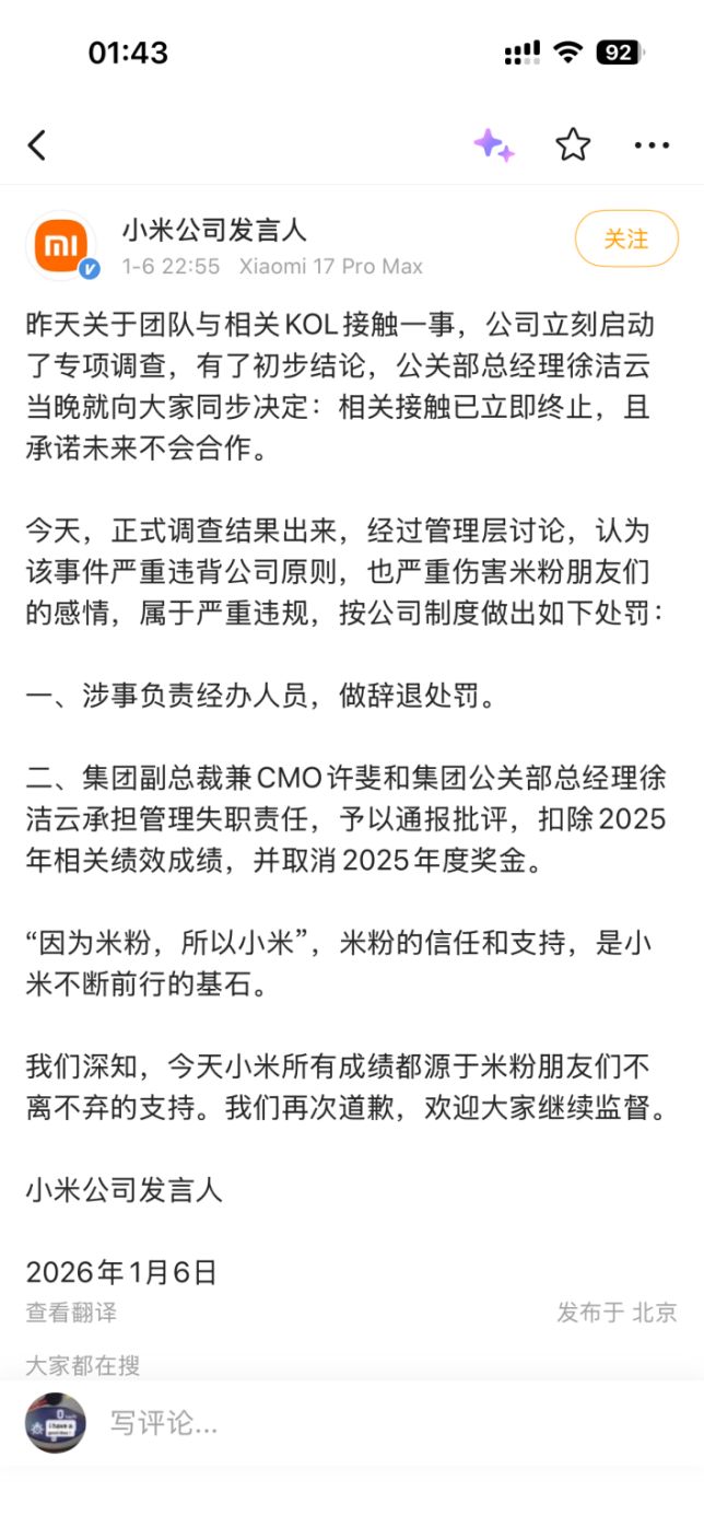 大熊作为公关专家被小米点名 “封杀”,这不是一个偶然事件,这可能代表着老登公关们正式进入了斩杀线。