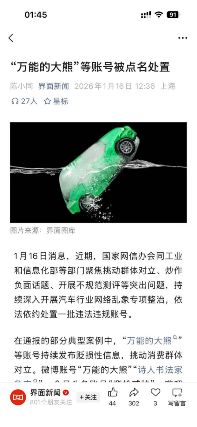 相比消灭一个账号更重要的是消灭一个账号的影响力,从李想封杀理记,到小米公司封杀万能的大熊,代表着以前那套老登公关的做法走不通了,不管你是谁的“哥们”或者你能处理什么关系,让事情回到它本该有的样子。