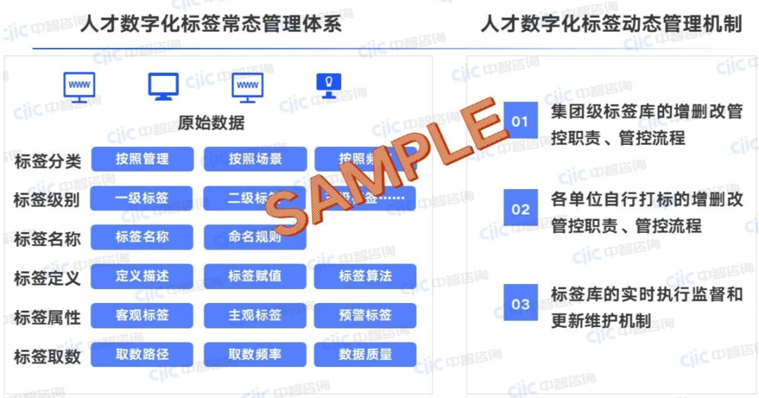 针对上述挑战,中智咨询认为,一套行之有效的人才标签管理体系应当从体系设计、落地实施到场景应用进行全面规划,构建完整的标签管理闭环。