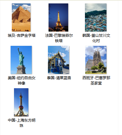 我建了一个“旅游照片”文件夹,里面放着一些世界各地的旅游照片(当然,是网上下载的,不是我拍的)。既有金字塔、自由女神像这样的世界级地标,也有清莱蓝庙、釜山甘川文化村这样相对不是特别出名的地方。