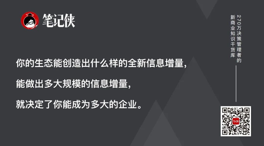 你的生态能创造出什么样的全新信息增量,能做出多大规模的信息增量,就决定了你能成为多大的企业。