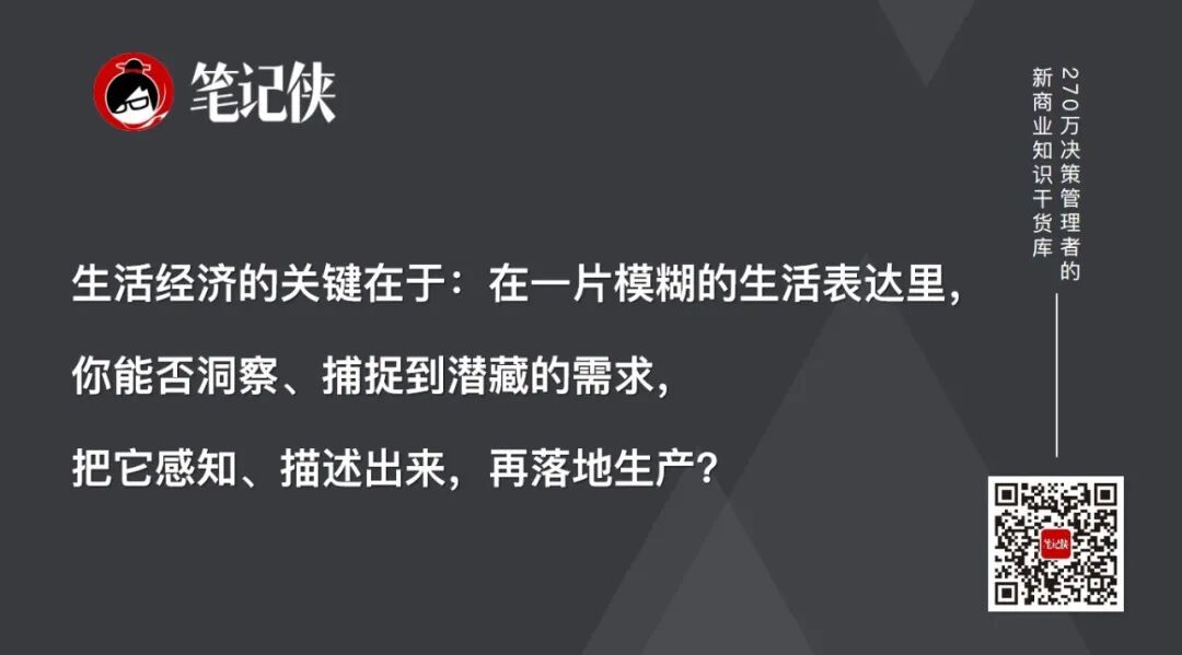 因为生活经济的关键在于:在一片模糊的生活表达里,你能否洞察、捕捉到潜藏的需求,把它感知、描述出来,再落地生产?