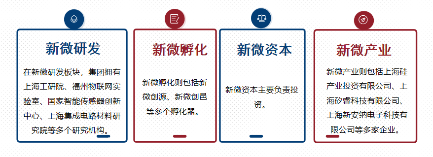 至此,加上原有的上海微技术工业研究院(以下简称“上海工研院”)和上海易卜半导体有限公司(以下简称“易卜半导体”),新微集团完成了“四大制造平台” 的战略拼图。