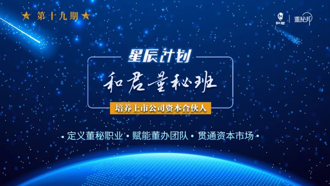 和君“星辰计划”董秘班19期,培养上市公司资本合伙人(2026春)