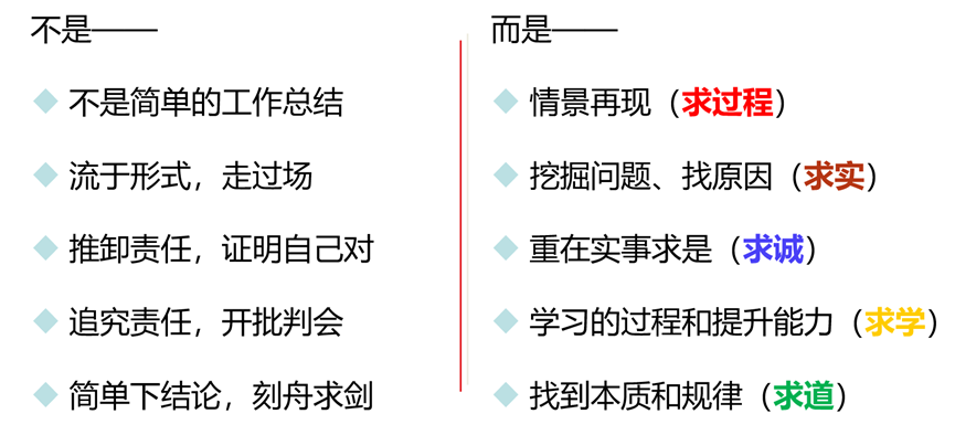 需要明确的是,复盘并非简单的工作总结,不能流于形式、走过场;不能成为推卸责任、证明自己正确的工具;不能变成开批斗会、追究责任的场合;也不能只是简单地下结论或刻舟求剑。