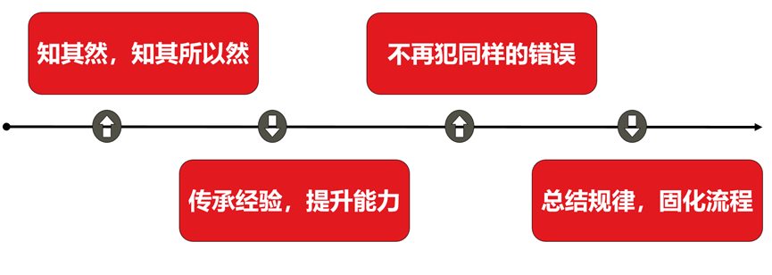 第二个理由是传承经验,提升能力。复盘在一定程度上类似于自我PUA,但复盘的最终目的是传承经验、提升能力。如果复盘不能面向未来,不能为个人和团队的成长提供助力,那么这种复盘就真的变成了毫无意义的自我PUA。在复盘过程中,找到自身的不足并进行批评与自我批评,本身并非坏事,但关键在于要能够针对这些不足,提出建设性的改进意见,为未来的成长和发展指明方向。如果没有建设性,只是单纯的批评和否定,那么复盘就失去了其应有的价值。例如,我自己脾气比较急躁,这主要是受家庭环境的影响,我妈、我爸和我哥脾气都比较急躁,小时候经常会因为一点小事就被打骂。虽然我能够理解自己脾气急躁的原因,但我也清楚这种脾气不利于工作和生活。因此,在与人沟通时,即使我因为急躁而噼里啪啦输出了一顿,之后也会及时补充说明,解释为什么会这样说,以及这样说对未来的工作和事情推进有什么帮助,确保自己的表达具有建设性。这种建设性并非指要传递正能量或让对方听着舒服,从广义上讲,是指能够帮助对方面向未来变得更好,如果是这样,那就是真正有价值的复盘;如果不是,那就是单纯的批评。