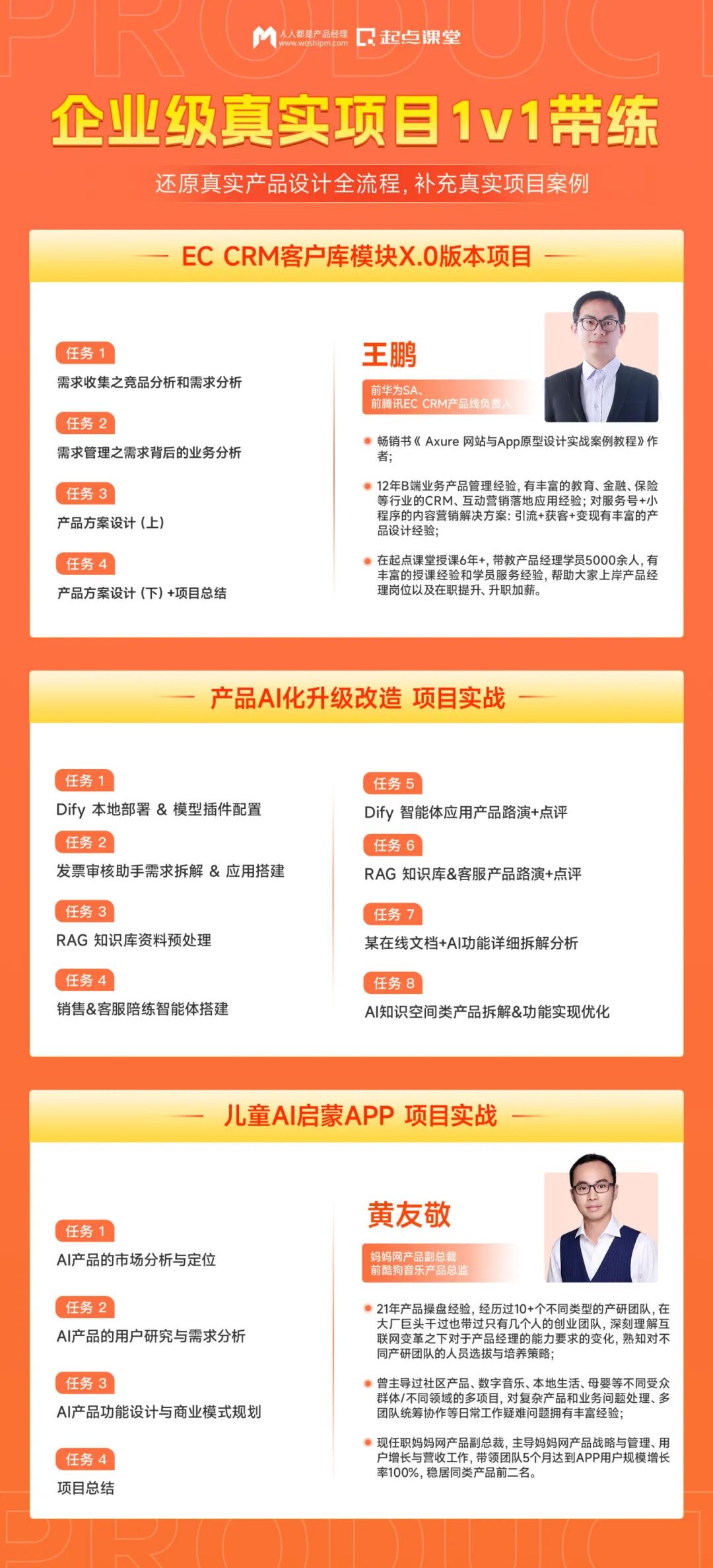 陪跑方案2:企业级真实项目1v1带练,带你进阶全栈型产品人才