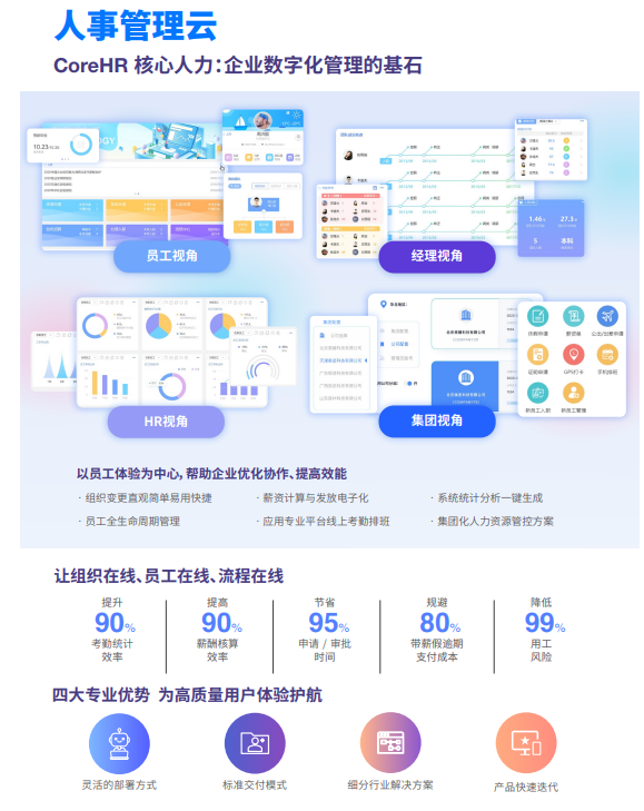 肯家人事管理云以员工体验为中心,帮助企业优化协作,提升90%的考勤统计、薪酬核算效率,节省了95%以上相关流程审批时间,是企业数字化管理的基石。
